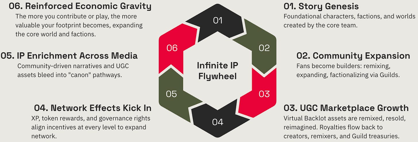 Most importantly, it creates the conditions for Infinite IP — living stories that outgrow their originators, evolving dynamically as more minds and hearts contribute.
